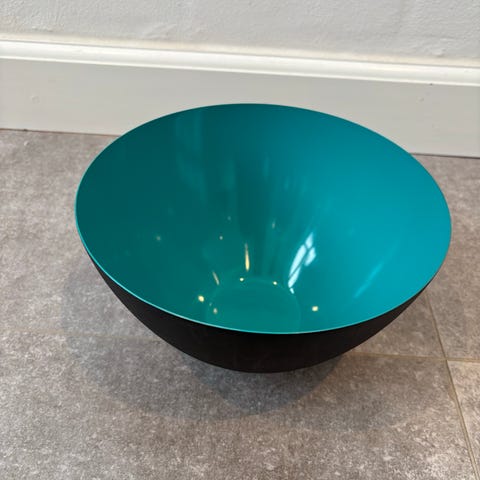 Normann Copenhagen krenit skål i metal med sort yderside og turkis inderside. Skålen har brugsspor og patina, især på indersiden,