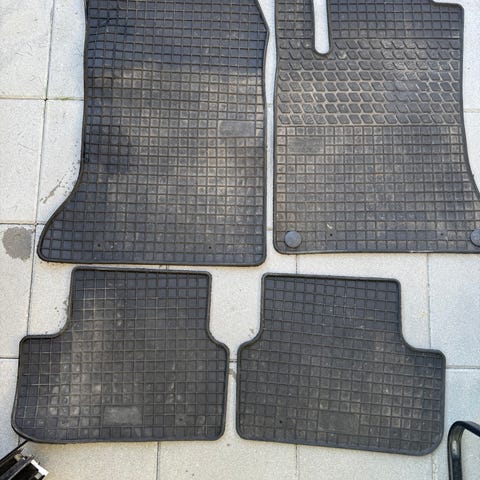 Mercedes-Benz gummimåtter sæt til bil, består af fire dele. Måtterne har en sort farve og er designet til at passe specifikt til Mercedes-Benz køretøjer. Materialet er robust gummi, hvilket sikrer holdbarhed og nem rengøring. Sættet inkluderer måtter til både for- og bagsæder.