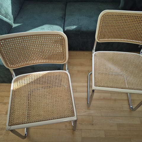 Der er som skrevet 6 stk af disse frisvinger stole, med sort metal stel og kunstlæder sæder og ryg i okseblodsfarvede. De sælges samlet og skal hentes i Skibby.
