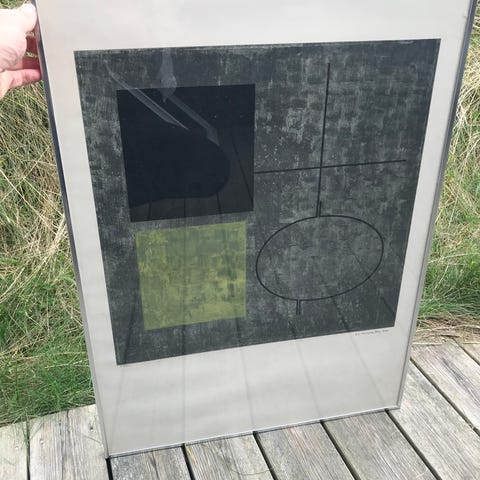 Serigrafi af Ole Schwalbe. Nummereret 40 ud af 50 eksemplarer, signeret og dateret 1988. Kunsttrykket er monteret smukt i en sølv ramme med glas og passepartout.