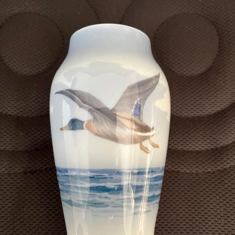Royal Copenhagen Vase model 1090 209A i porcelæn med håndmalet motiv af to vadefugle. Vasen er hel og i fin stand uden skår. Produktet er stemplet under bunden med Royal Copenhagen-mærket og modelnummer, malerne. 39. Kongelig Dansk Vase med vadefugle.