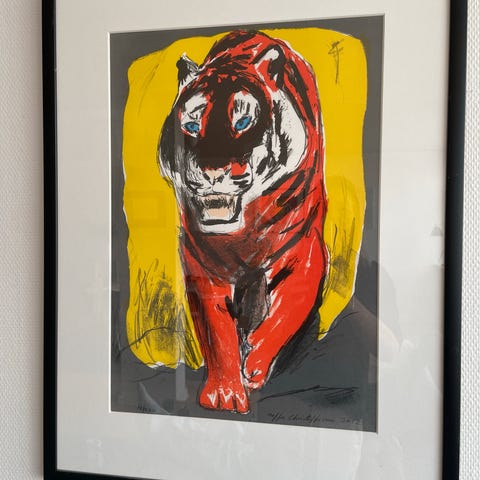 Litografi i fine varme farver. Prof indrammet med passepartout. 52 x 48 cm. Pæn stand.