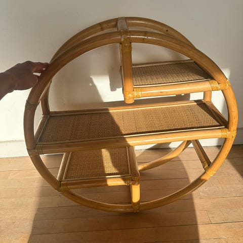 Hjørnehylde lavet af bambus træ med flere hylder til opbevaring. Hylden er designet til at passe ind i hjørner og kan bruges til opbevaring af planter, bøger eller andre småting. Materialet er bambus, som giver et naturligt og let udtryk. Sælges pr stk 100 tingene på hylderne kan medkøbes kom med et dog ikke VW kurs og børsterne 🤠