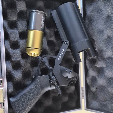 Sælger denne flotte Cybergun Colt M203 granatkaster - en autentisk airsoft replica af den klassiske militære granatkaster. Perfekt til airsoft sende en byge af kugler afsted mod modstanderen eller i baghaven. Kan enten sættes på RIS rails.
