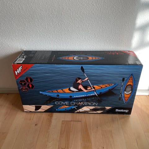Bestway Outdoor Elite 2000 oppustelig båd sæt designet til 2 personer. Båden er orange med blå og sorte detaljer og lavet af holdbart materiale til brug på vand. Sættet inkluderer årer og pumpe til nem oppustning.