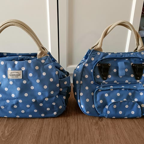Fine cykeltasker, let aftaglige, har brugsspor, men ikke noget særligt tydeligt når påhængt. Passer de fleste almindelige cyklet med bagagebærer.