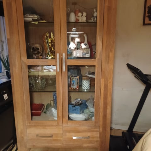 Over vitrine i bøgetræ. Mærket Falsig, dansk møbeldesign. Står som ny og venter på ny ejer.
