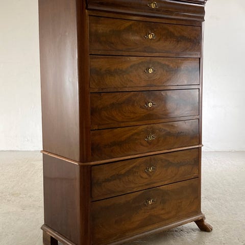 Tidens brug har sat sit aftryk i form af en autentisk patina, som giver møblet sjæl og en romantisk aura – det føles som et fund med historie og personlighed. De tre rummelige skuffer giver rigelig plads til at gemme dine ejendele væk, uden at gå på kompromis med æstetikken.