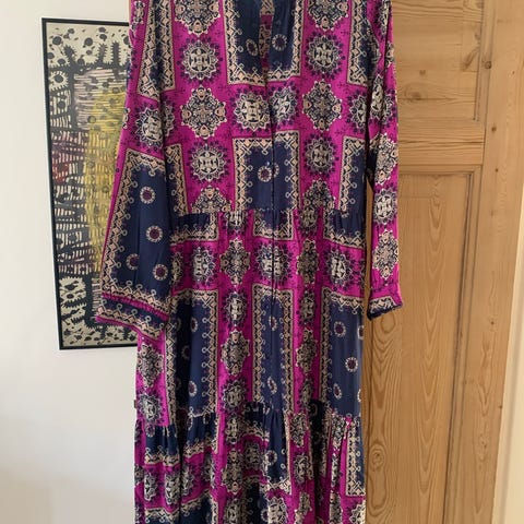 Fin a-formet kjole fra Lollys Laundry i en sprød bomuldskvalitet med fine draperinger og flot blomsterprint. Kjolen har lange luftige ærmer med fine læg og en v-udskæring med små flæsedetaljer og bindebånd ved halsen. En virkelig flot kjole som også nemt kan styles som tunika over et par jeans.
