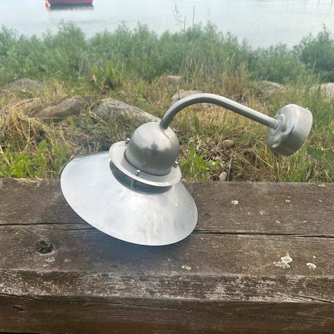 Rustfri stål udendørslampe ca. 30 cm høj og ca. 22 cm ud fra væg. Helt ny. kan sendes for købers regning