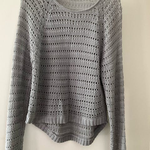 Sød strikket råhvid kort top str. M med hulmønster og korte ærmer