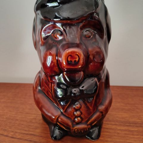 Velholdt retro / vintage sparegris - desværre ingen nøgle . Den er 14 cm høj , 13 cm bred .