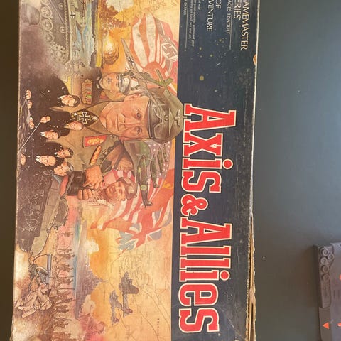 Axis & Allies brætspil er et strategispil, der fokuserer på historiske begivenheder fra Anden Verdenskrig. Spillet inkluderer et verdenskort, spillebrikker som fly og soldater, samt instruktioner og kort til spillets gang. Det er designet til flere spillere og kræver strategisk planlægning og samarbejde.