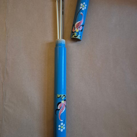 Helt skønt rør til strikkepinde. Har en lille revne ved lynlåsen, se billedet.