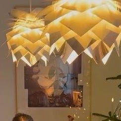 Lyset er behageligt og passer perfekt i hjørne eller ved siden af sofa.