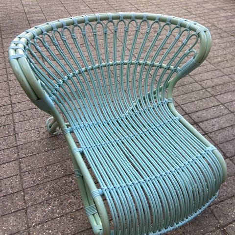 Sæt bestående af 2 vintage fletstole fremstillet i naturmateriale. Stolene har en rundet ryg og sæde, med en robust flettet struktur. Egnet til indendørs eller overdækket udendørs brug.