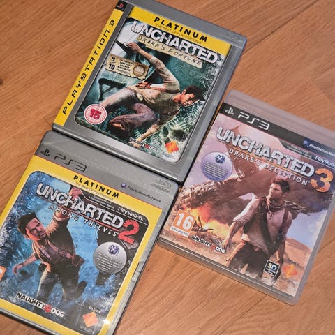 Uncharted sæt, drake's fortone, among Thieves, dr, PS3, Uncharted sæt, drake's fortone, among Thieves, drake's deception, spil til Playstation3 sælges samlet for kun 150kr, kan også sendes med posten for +50kr