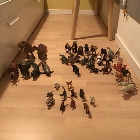 Legetøjs dyr med kasse