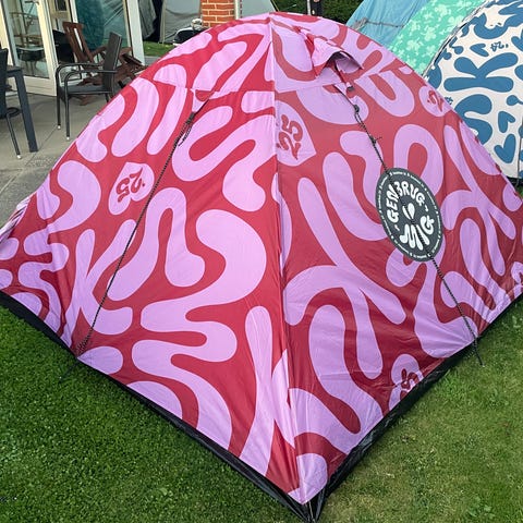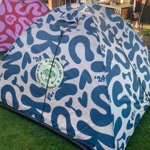 Turkis-grøn 2/3-personers telt fra SmukFest 2023.
