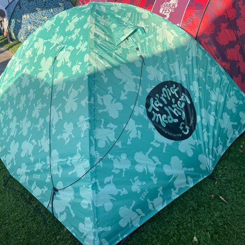 Mørkeblå/sand 2/3-personers telt fra SmukFest 2024.