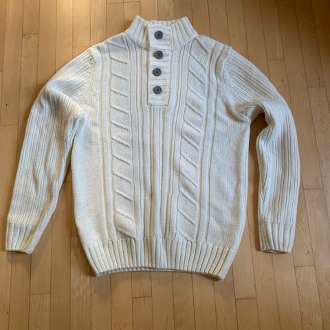 Uld sweater med lapper på skulder og albuer. Unisex. Størrelse 50. Se fotos.