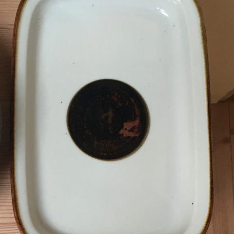 Lille ovnfast fad. Af ældre dato, men i fin stand. Måler ca 28x19x5 cm.