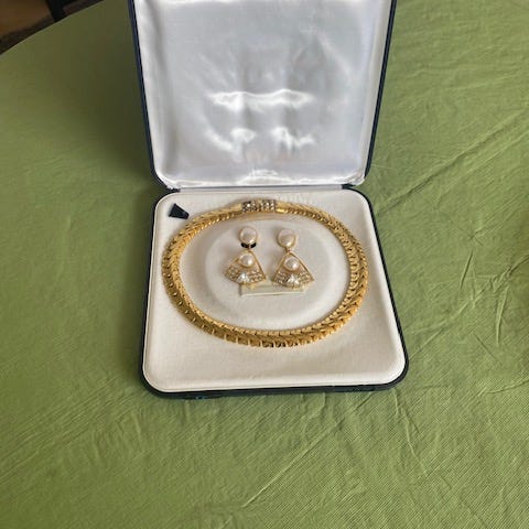 Halskæde og 2 sæt øreringe/stikkere sælges samlet.