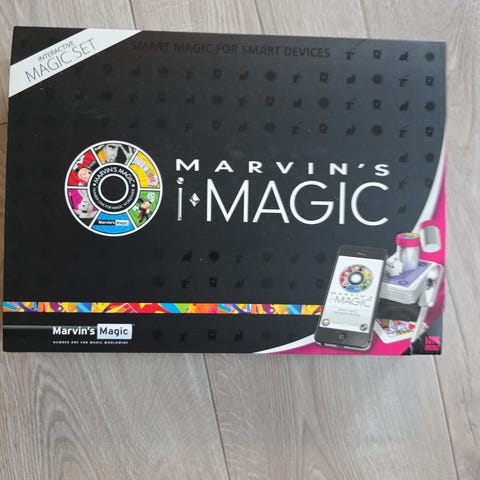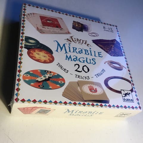 Mini-Magic kortspil med tryllestav og illustrerede kort. Spillet indeholder kort med forskellige figurer som hekse, feer og dyr, samt en tryllestav som en del af spillets rekvisitter. Kortene er farverige og designet med magiske temaer. Velegnet til børn og familier til underholdning og magiske tricks.