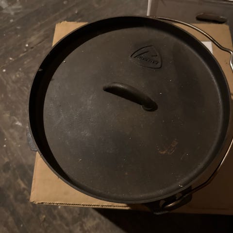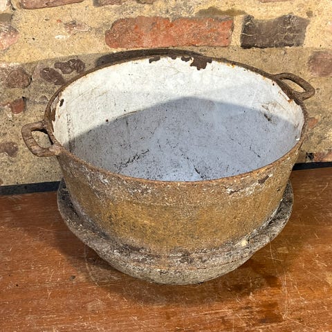 Gryde af støbejern. Brugt på komfur. Højde 21 cm. Diameter 31 cm
