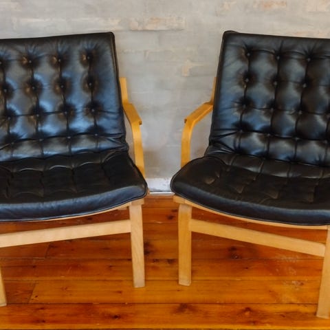 Haves 2 stk meget velholdte lænestole i læder. Komforten er rigtig god, og man kan læne sig tilbage i den. Kan sælges hver for sig.
