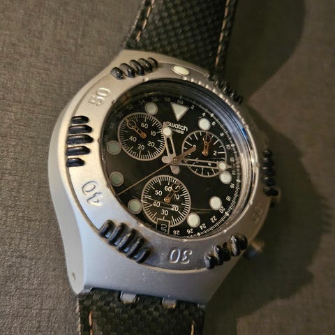 Alle billeder er af det aktuelle SWATCH GS102 COSMIC ENCOUNTER - (1986 Halley’s Comet Edition), der sælges.