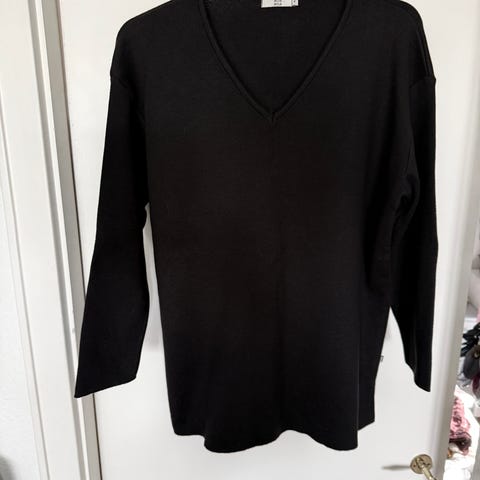 Flot strik bluse i cotton med diskret metallisk guld tråd , kan vaskes, let oversized, passer til str. S/M. Kvalitet fra NoaNoa. Nedsat pris.