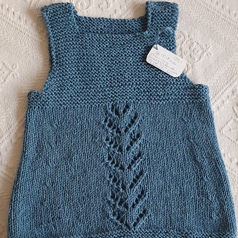 Str 15-18 mdr, 37 cm lang. Jeg har strikket den i garnet Belle, som er 53% bomuld, 14 % hør, 33 % viskose.