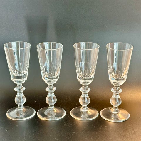 Fire ølglas, vandglas eller whiskeyglas, Fire antikke krystalglas facetslebne med øjne. Super cool glas med tyngde. Højde 12 cm. Jeg kender ikke navn eller oprindelsen. Alle i fin stand.
