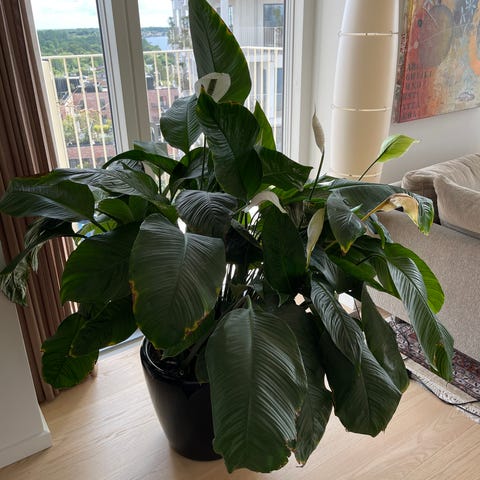 Jeg sælger denne Fredslilje til 50kr. uden potte eller 65kr. med potte.