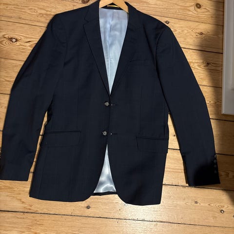Jeg bruger normalt str 52 i blazer, så det går jeg ud fra denne også er, da det ikke står nogen steder.