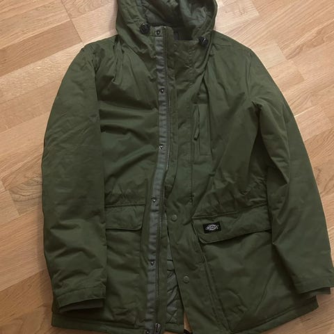Carhartt Andet udendørstøj jakke i størrelse XS til kvinder. Jakken er grøn og har en pelskant på hætten. Den er designet til udendørs brug og har lommer med knapper foran. Indvendigt er jakken foret for ekstra varme.