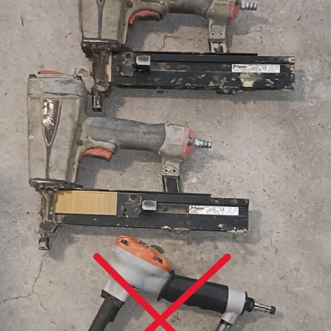 Lille klammepistol til opsætning af profilbrædder til sømning i not, skjult