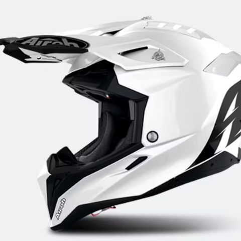 Airoh Aviator crosshjelm i sort og hvid farve. Hjelmen har en letvægtskonstruktion og indvendig polstring for komfort. Designet til off-road og motocross brug, med god ventilation og beskyttelse.