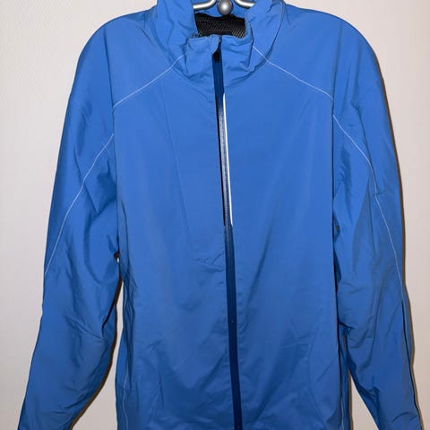 Jakke og bukser, brugt få gange. Jakke har hel lynlås, lommer og velpoluk, bukser har sidelommer og der er velpolukke neders på benene. Jakke er cremefarvet, bukser sorte.