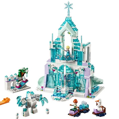 LEGO Disney Frost miniaturbygning legetøj med små figurer og tilbehør. Sættet indeholder en lille bygning med blå og lilla farver, en figur med blå hår og tøj, samt ekstra små elementer. Velegnet til børn og samlere, lavet af plastmateriale.