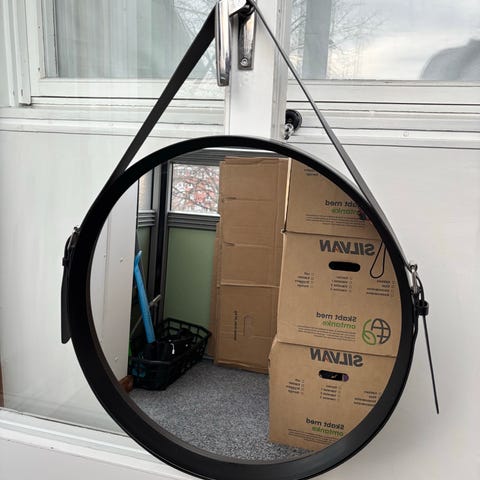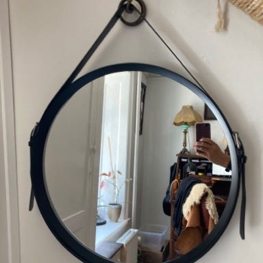Lille væghængt spejl med lyskæde – 35 cm i diameter