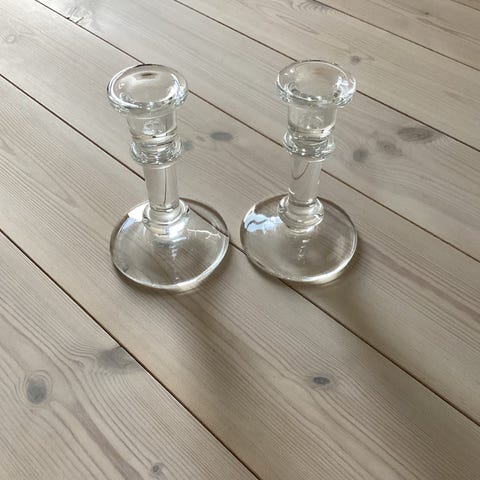 Kosmos lysestager med krave i sølvplet, tegnet af Michael Bang for Holmegaard glasværk i 1976.