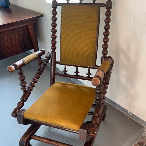 Antik skandinavisk gyngestol i nyklassisk stil fra 1900-skiftet.