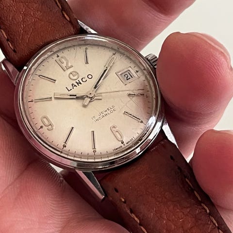 Flot vintage Lanco ur i gulddouble. Mekanisk værk med automatisk optræk. 34 mm uden krone