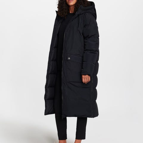 Peak Performance Taylor dunjakke til kvinder i størrelse XL. Frakken er sort og fremstillet med quiltet design og lynlåslukning. Materialet er let og isolerende, velegnet til koldere vejrforhold.