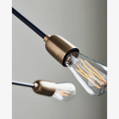 3 stk frithængende lampefatninger i messing, med sort stofledning. Ubrugte og stadig i original indpakning. Sælges samlet og prisen er for alle tre.