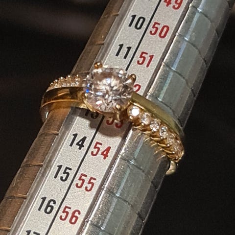 Lødighedsstempel. 14 karat ring med stor orange koralsten.