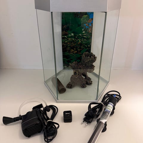 Der medfølger det tilbehør der ses på billedet. OBS pumpen mangler bund og indhold.
