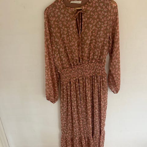 Rigtig sød kjole fra Sofie Schnoor størrelse small - kjolen er med bindebånd i taljen og lynlås i siden. Den måler 46 cm fra side til side under ærmegab og 105 cm i længden